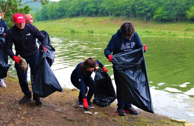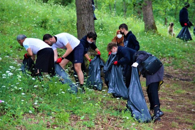 Kocaeli'nin Gebze ilçesinde doğada yürüyüş yapmak için bir araya gelen belediye başkanı, sporcular ve öğrenciler, yürüyüşün ardından piknikçilerin çöpleriyle kirlettiği Denizli Göleti'nin etrafını elleriyle temizledi.