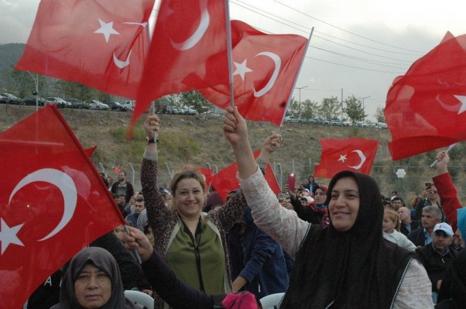 Soğuk havaya rağmen konsere yoğun katılan gösteren vatandaşlar ellerindeki Türk bayraklarıyla Işılak’a eşlik etti. Konser sonunda Başkan Mahçiçek sanatçı Uğur Işılak’a çiçek hediye etti.
