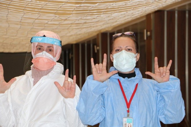 3 yaşında geçirdiği bir hastalık sonrasında sağır olduğunu belirten işitme engelli Covid-19 hastası Remzi Durmuş, "Ben Urfa'da doğdum. 3 yaşına kadar konuşuyordum, sonrasında hastalandım ve sağır oldum. Ben Etimesgut'ta çalışıyorum. Arkadaşlarımla beraber, 6 kişi oturuyorduk. 1 tane konuşan arkadaşımız Covid'miş bulaştırdı. O gitti, biz pozitif olduk. Ben 1 hafta iyiydim. Konuşan arkadaşım da iyiydi. Ben anlamadım biraz boğazımda kaşıntı gibi bir şey vardı, anlayamadım. Doktora gittim sürüntü testi aldılar. Bıraktım bitti ben gittim. Çarşamba akşamı saat gece 02.00 gibi başımda çok şiddetli ağrı oldu. Rahatsızlandım, anlayamadım ne olduğunu da. E-Devlet'ten mesaj geldi. Ama anlamadım tabi ki mesajı. İş yerinde konuşan arkadaşıma dedim. Başım çok ağrıyor dedim ve eve geri geldim. Perşembe günü çok rahatsızlandım ve ertesi günü tekrar gittim. Başhekim ile konuştum. Tekrar görüştüm. Tekrar sürüntü aldılar ve pozitif çıktığımı öğrendim" ifadelerini kullandı.