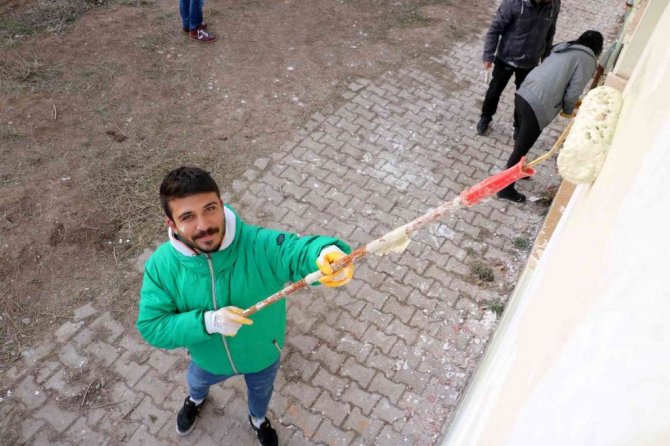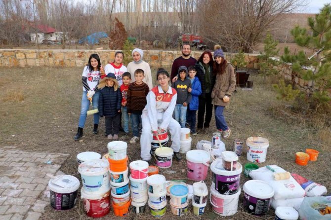 Sivas'ta bir araya gelen üniversite öğrencileri köy çocuklarının daha iyi bir ortamda eğitim alabilmeleri için köy okulunu boyayarak tadilat yaptı.