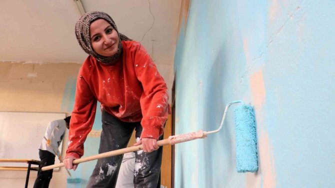 Topluluk üyesi Dilber Çalışkan, "Çocuklara daha güzel bir ortam sağlayabilmek için, onlara güzel bir okul sunmak için şu an buradayız okul boyuyoruz birlikte. Sabah geldiğimizde çok kötü durumdaydı. Arkadaşlarımız duygulandı. Üzüldük açıkçası. Ama güzel olacak. Çocuklarda çok sevindiler. Güzel bir şekilde onları sevindirmeye çalıştık" diye konuştu.