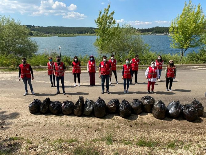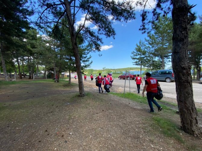 Türk Kızılay Bilecik Şubesine bağlı Genç Kızılay gönüllüleri Pelitözü Gölpark'ta onlarca poşet çöp topladılar