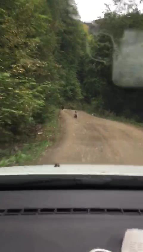 Karabük'ün Safranbolu ilçesine bağlı Sarıçiçek mevkiinde seyir halindeki otomobilin önüne anne ve yavru ayı çıktı. Sürücü bir taraftan cep telefonu ile o anları kaydederken, bir taraftan da anne ve yavru ayıyı ormanlık alana kadar sürdü. Anne ayı dik yamaçtan hızlıca ağaçlık alana girerken, yavru ayı ise bir süre yamaçtan çıkmak için mücadele verdikten sonra annesinin arkasından gözden kayboldu.
