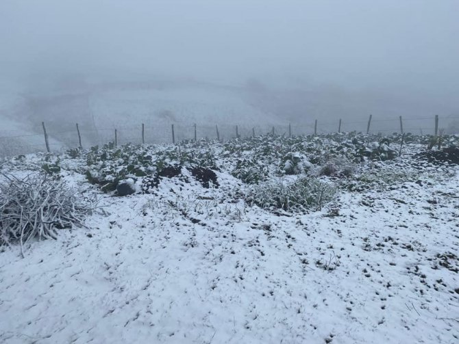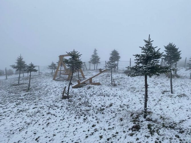 Yaylada bulunan bazı vatandaşlar, sonbahar ortalarında görülen kar yağışını cep telefonu ile fotoğrafladı.