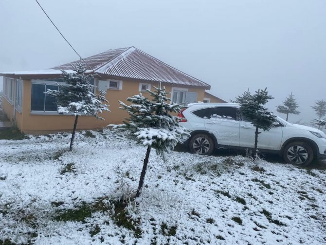 Ordu'nun yüksek kesimli yaylalarında sabaha karşı etkili olan kar yağışı, çevreyi beyaza bürüdü.