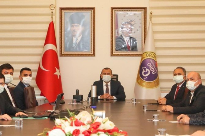 Valilik Toplantı Salonunda, yapılan Kovid-19 Pandemisi Değerlendirme Toplantısı'na, Vali Yardımcısı Ekrem Ballı, Mesudiye Kaymakamı M. Emre Canpolat, Kumru Kaymakamı Hüseyin Aydın, diğer İlçe Kaymakamları video konferans yoluyla, İl Sağlık Müdürü Dr. Mustafa Kasapoğlu ve İl Sağlık Müdürlüğü yöneticileri katıldı.