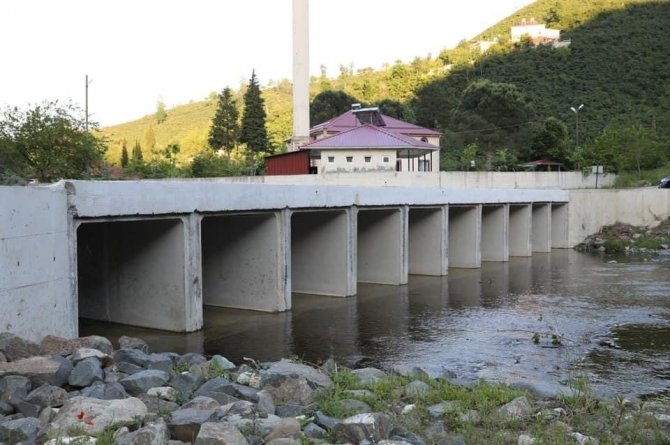 Ordu'da taşkın riski olmayan dere ve ırmaklar üzerinde yerleşim ünitelerinin ulaşımını kolaylaştırmak amacıyla bakslı köprü inşa ediliyor.