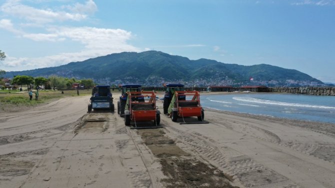Altınordu ilçesi Akyazı Plajı ile başlatılan temizlik kapsamında traktör arkası tırmıklarla plajlardaki kaba kirlilik temizlenip kum tesviyesi yapılıyor. Traktör arkası çekilir tip plaj temizlik makinalarıyla da kumlar elenip içerisinde bulunan her türden atığın (çöp, izmarit, cam, taş, organik atıklar vb.) temizlenmesi sağlanıyor.