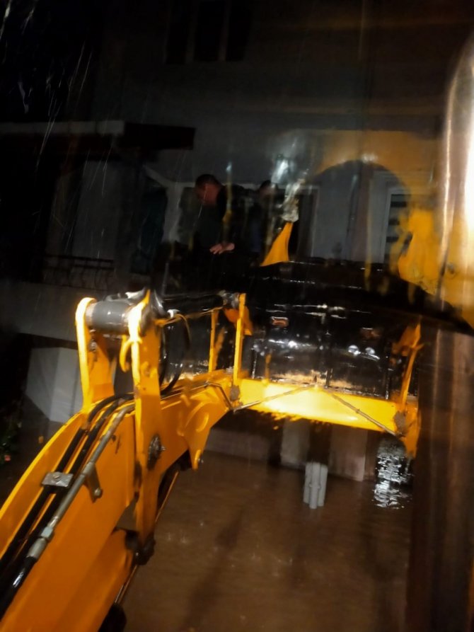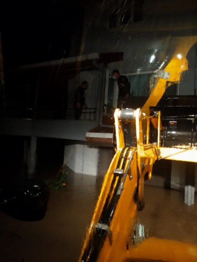 Ordu'da, dün başlayan ve gece saatlerine kadar devam eden şiddetli sağanak sonrası Ünye ilçesinde su baskını olan evlerde çalışmalar sürüyor.