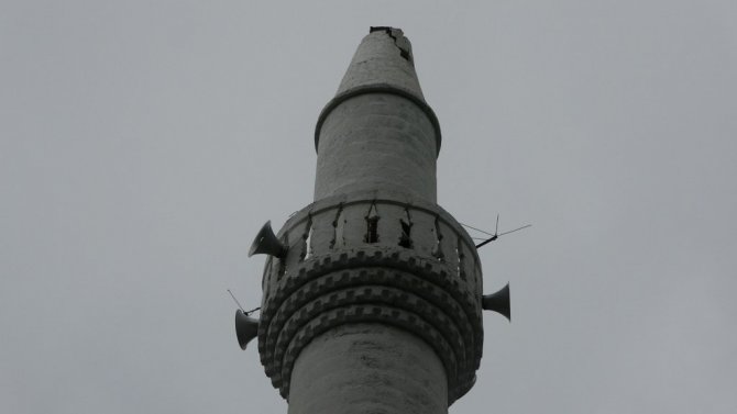 Ordu’da yıldırım düşen minarenin ucu koptu