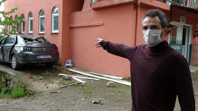 "Olaydan yarım saat önce burada insanlar vardı, çok şükür sadece araçta hasar var"