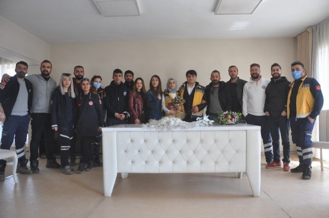 Bugün sağlık camiasının kendilerini yalnız bırakmadığını dile getiren Gökhan Öztürk ise "Bugün çok mutluyum, çünkü nikahımızı Yüksekova'da yaptık. Tüm sağlıkçı arkadaşlar beni bugünümde yalnız bırakmayarak, en güzel günüme ortak oldular. Yüksekova Belediyesine geldik ve şükür sıkıntısız nikahımızı yaptık. Tüm katılan sağlıkçı arkadaşlarımıza çok teşekkür ederiz" ifadelerini kullandı.