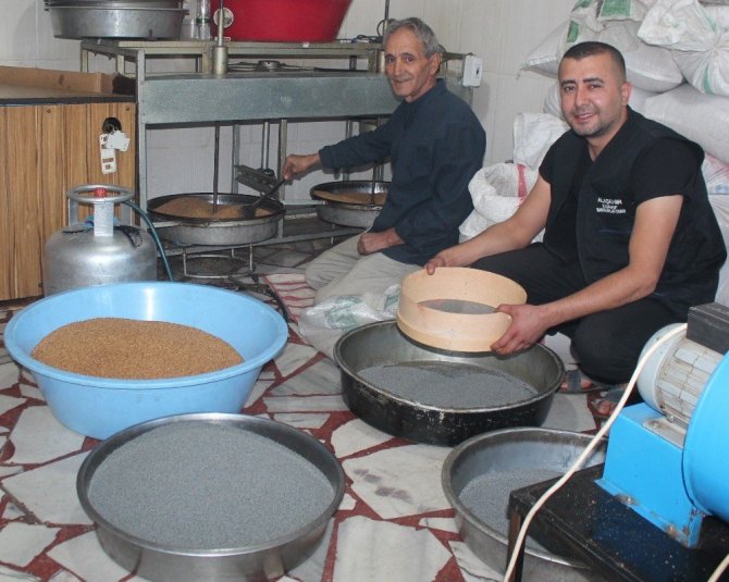 Susam ve haşhaşlar tarladan toplandıktan sonra, makinelerde savrulup çöplerinden temizleme işleminden geçtikten sonra büyük kazanlarda elle özenle bol su ile yıkanıyor. Taşlardan, topraktan temizlenen susamlar süzgülerden geçirilerek suyu süzülüyor. Açık alanda örtüler üzerine serilerek, güneşte kurutulan susamlar ateşte kavrularak, makinelerde ezme yapıldıktan sonra paketlenerek satışa sunuluyor. 500 gram ve 1 kilogramlık ambalajlarda piyasaya sürülüyor. Haşhaş yapımı da aynı şekilde makinelerde temizlenerek ezme yapılıp, paketlenerek, satışa sunuluyor.