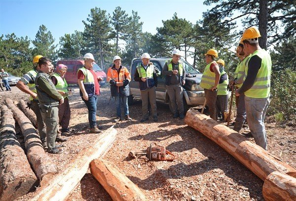 Doğru ağaç kesme teknikleri konularında üretim işlerinde çalışan işçileri bilgilendiren Keskin, standardizasyon, ölçüm ve tasnif işlerinde dikkat edilmesi gereken konuları da aktararak, iş güvenliği tedbirlerinin alınmasının önemine değindi.