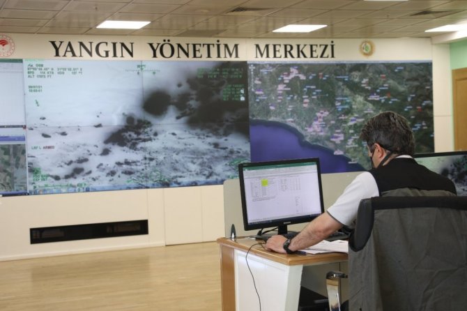 Antalya'nın Manavgat ilçesinde dört farklı bölgede meydana gelen yangınların sayısı son 24 saat içinde ülke genelinde 41'e ulaştı. Yangın söndürme çalışmalarının koordine edildiği Orman Genel Müdürlüğü Yangın Yönetim Merkezi ise 7/24 aktif olarak çalışıyor. Merkezde her gün sırasıyla 4 mühendis yangınları söndürme çalışmalarını koordine ediyor. Yangınlarda geceleri uçaklar ve helikopterler görüntü veremediği için gece orman yangını denetimi İHA'larla yapılıyor. İHA'lar anlık görüntüleri ve koordinatları Yangın Yönetim Merkezi'ne aktarıyor. Helikopterler, araçlar, rezervler, uçakların tamamı harita üzerinde görüntülenebiliyor. İHA koordinat verdiğinde o bölgede aracın olmadığını görüyorsa görev emir sistemi ile araçlarda bulunan tabletlere koordinat gönderiliyor. Navigasyona düşen koordinat ile araç otomatik olarak o bölgeye hareket edebiliyor.