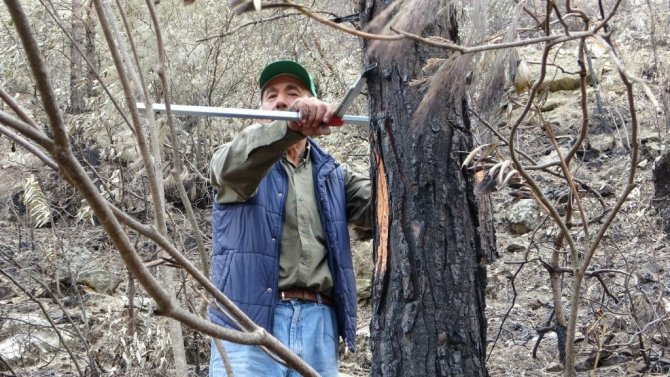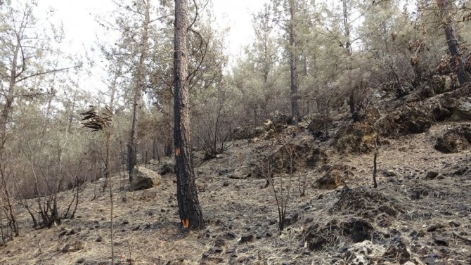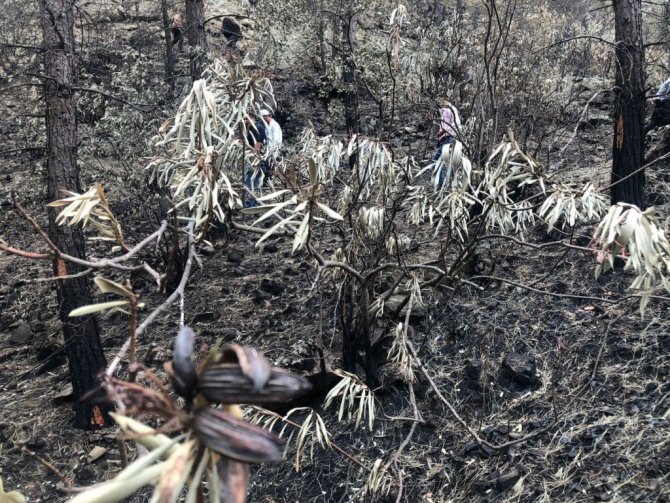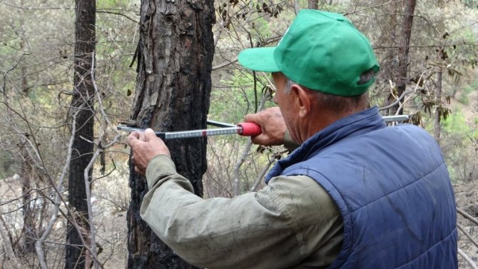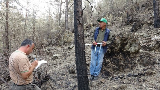 Kozan'da yaklaşık 1650 hektar alanda etkili olan yangının izlerini silmek için yangından etkilenen ağaçlar tek tek orman mühendisleri tarafından damgalanıyor.