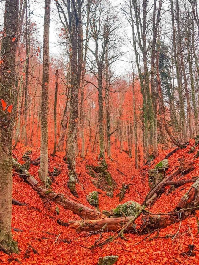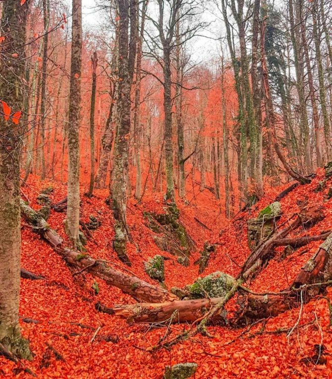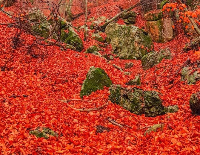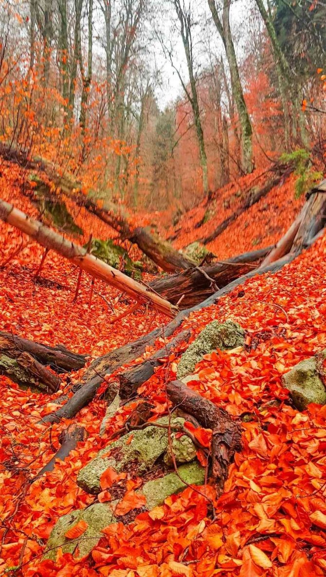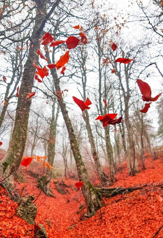 Ormanlarda yapraklar kızıla döndü, muhteşem manzaralar ortaya çıktı