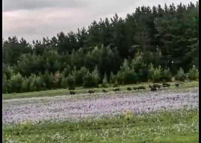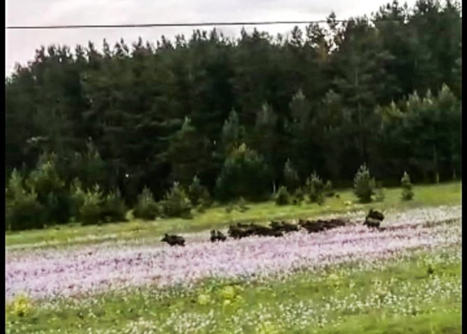 İnsanları fark eden domuz sürüsü bir süre sonra hızla ormanlık alana ilerliyor.