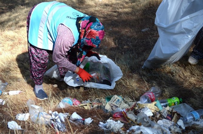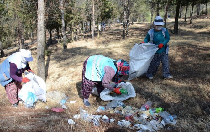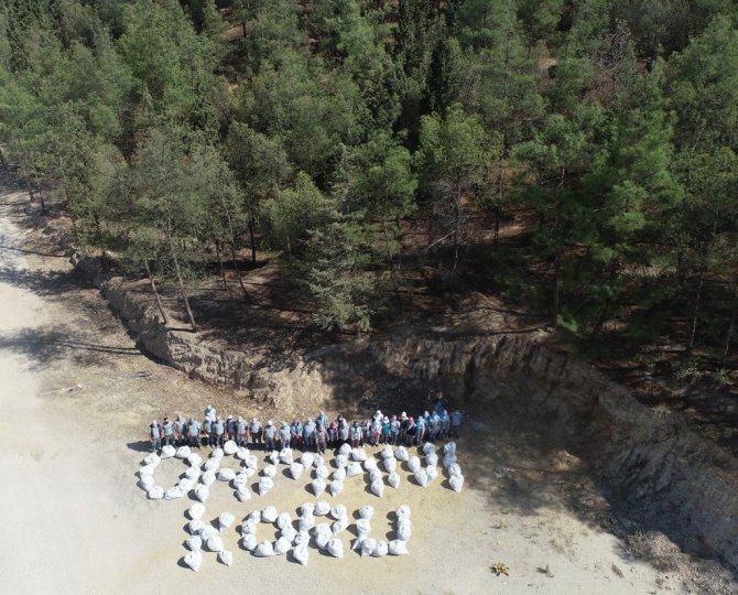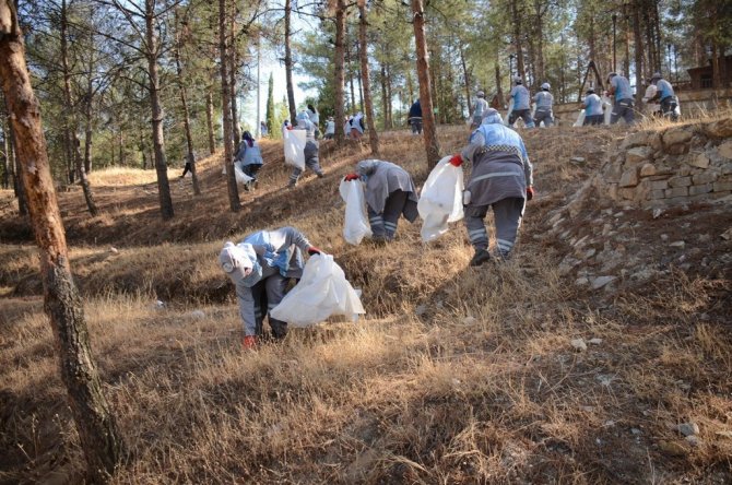 Ormanlık alanları temizleyen görevlilerden anlamlı mesaj