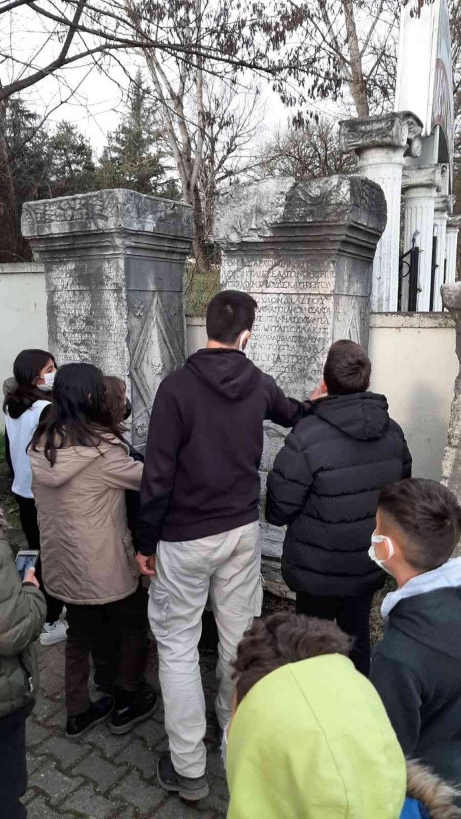 DÜZCE (İHA) – Batı Karadeniz bölgesinin tek antik kenti olma özelliğini taşıyan Konuralp'te yapılan kazı çalışmalarında çıkartılan eserler Konuralp Müzesi'nde sergileniyor. Yeşiltepe Ortaokulu öğrencileri de son çıkartılan eserleri görmek için Konuralp Müzesi'ni ziyaret etti.