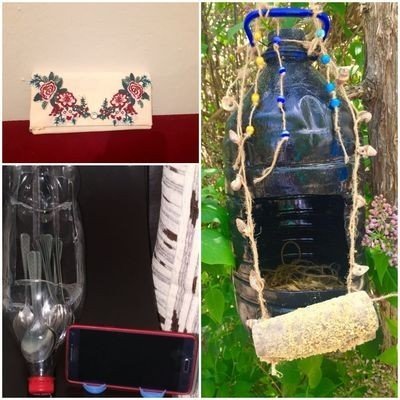 Evlerindeki atıklardan çeşitli eşyalar tasarladılar