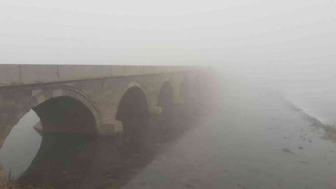Çorum'un Osmancık İlçesi güne sisle uyandı. Koyun Baba Köprüsü ve Kandiber Kalesi sis nedeni ile görünmez hale geldi.