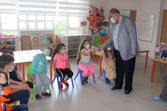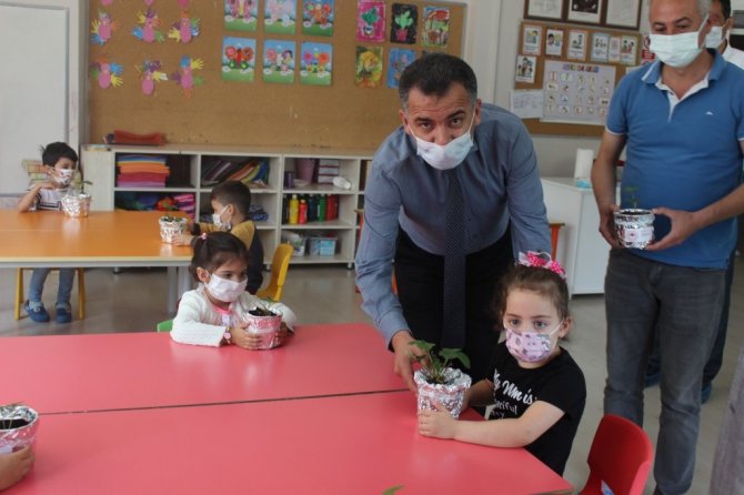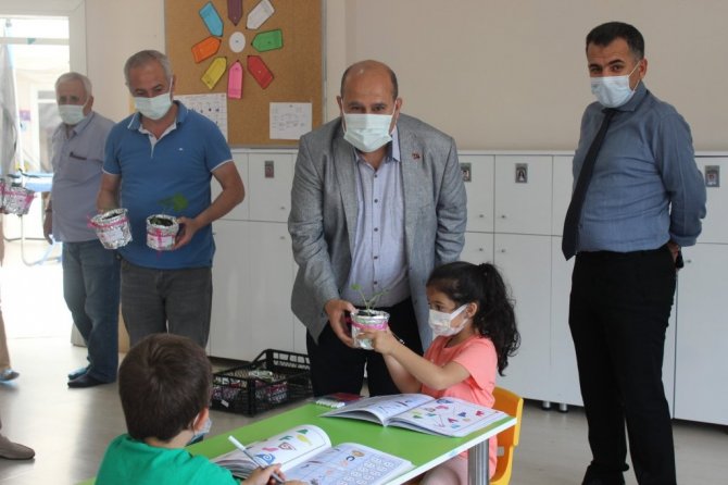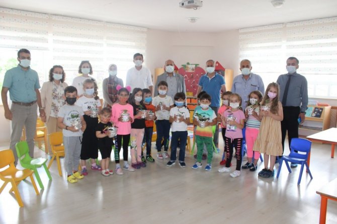 Anaokulunda düzenlenen törende, Kaymakam Yüksel Ünal, İlçe Milli Eğitim Müdür vekili Yunus Cengiz, Tarım ve Orman İlçe Müdürü Serkan Diker, Okul Müdürü Ercan Arslan 150 adet saksıda çileği, anaokulu öğrencilerine dağıttı.