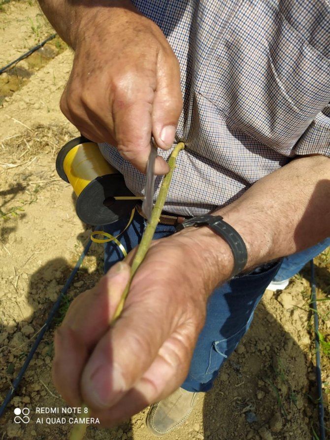 Bilecik'in Osmaneli ilçesinde örnek seçilen bahçede bulunan zeytin ağaçlarına, Mersin Tarsus yöresine ait Sarı Ulak zeytin çeşidinin aşılaması yapıldı.