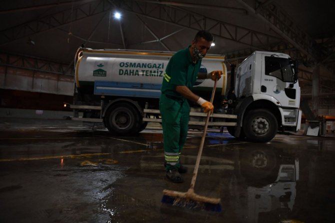 Osmangazi Belediyesi, Kurban Bayramı dolayısıyla kesim alanı olarak düzenlediği noktalarda günün 24 saati temizlik çalışması yürütüyor.