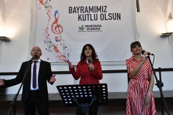 Osmangazi Belediyesi Türk Sanat Müziği Topluluğu, Kurban Bayramı'nın ilk gününde renkli bir konsere imza attı. Şef Rüştü Şentürk yönetiminde gerçekleşen konserde topluluk üyeleri, "Affetmem Asla Seni', "Sevil Neşelen', "Sevemez Kimse Seni" ve "Gözleri Aşka Gülen" gibi eserlerden oluşan repertuarlarını koro ve solo olarak seslendirdi. Online olarak gerçekleşen konserler kapsamında bayramın ikinci günü ise Türk Halk Müziği Topluluğu sahne aldı. Şef Erdem Usanmaz yönetiminde koro üyeleri, "Telgrafın Tellerine', "Bursa'nın Ufak Tefek Taşları', "Candan İleri', "Yoğurt Koydum Dolaba" gibi şarkıları hep bir ağızdan söyledi.