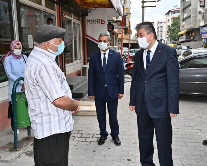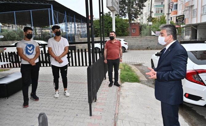 Sağlık Bakanı Fahrettin Koca'nın haftalık açıkladığı 100 bin kişide Covid-19 vaka sayısı verilerine göre, 6,2 oranla Türkiye'de en az vakaya sahip olan Osmaniye'de korona virüs denetimleri aralıksız devam ediyor. Belediye Başkan Yardımcısı Mehmet Hulusi Akkuş, İl Sağlık Müdürü Dr. Hasan Öznavruz ve 112 Acil Çağrı Merkezi Müdürü Guddusi Arık ile birlikte Raufbey Mahallesi'nde esnaf ve vatandaşları ziyaret eden Vali Erdinç Yılmaz, vaka sayısında Osmaniye'nin birinci olduğunu hatırlatarak kuralların asla gevşetilmemesi konusunda uyarılarda bulundu.