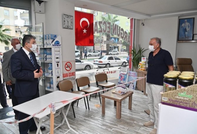 Sağlık Bakanı Fahrettin Koca'nın haftalık açıkladığı 100 bin kişide Covid-19 vaka sayısı verilerine göre, 6,2 oranla Türkiye'de en az vakaya sahip olan Osmaniye'de korona virüs denetimleri aralıksız devam ediyor. Belediye Başkan Yardımcısı Mehmet Hulusi Akkuş, İl Sağlık Müdürü Dr. Hasan Öznavruz ve 112 Acil Çağrı Merkezi Müdürü Guddusi Arık ile birlikte Devlet Bahçeli Bulvarı boyunca gerçekleştirilen denetimlere katılan Vali Erdinç Yılmaz, ziyaret ettiği esnaflardan vakaları sıfırlamak için destek istedi.