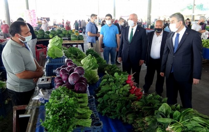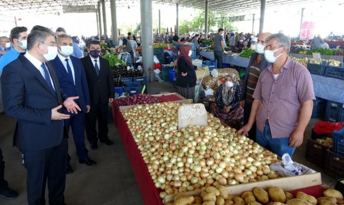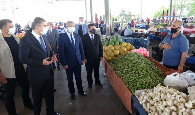 Sağlık Bakanlığı tarafından açıklanan son hafta korona virüs tablosunda 100 binde 35, 91 oranla insidans haritasında kırmızı renkten sarı renge dönen Osmaniye'de vaka sayıları düşüyor. "Dinamik Denetim Modeli" kapsamında Belediye Başkan Yardımcısı Mehmet Hulusi Akkuş, İl Sağlık Müdürü Dr. Hasan Öznavruz, 112 Acil Çağrı Merkezi Müdürü Guddusi Arık ve Pazarcılar Dernek Başkanı İsmail Görgülü ile birlikte kapalı semt pazarında denetimlere katılan Vali Erdinç Yılmaz, esnaf ve vatandaşlara kurallara sıkı sıkıya uyulması gerektiğini hatırlattı.