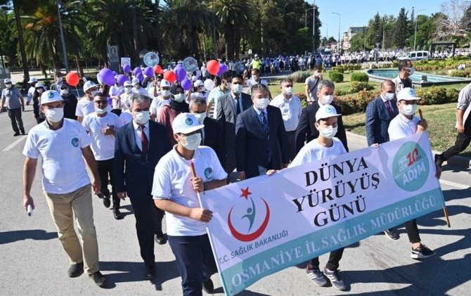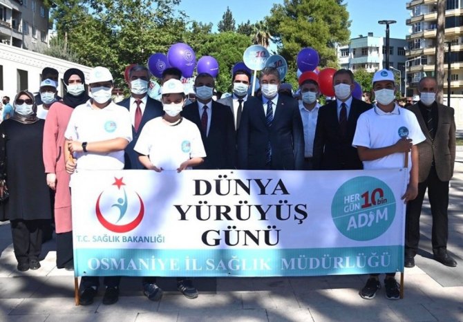 'Dünya Yürüyüş Günü" etkinleri kapsamında onlarca öğrenci sağlıklı bir toplum adına farkındalık yürüyüşü gerçekleştirmek için Devlet Bahçeli Meydanı'nda bir araya geldi. Vali Erdinç Yılmaz, İl Sağlık Müdürü Dr. Hasan Öznavruz, Gençlik ve Spor İl Müdürü Mustafa Loğoğlu, Halk Sağlığı Hizmetleri Başkanı Dr. Mehmet Bahar ve Osmaniye Devlet Hastanesi Başhekimi Op. Dr. Orhan Erol'unda katılım gösterdiği etkinlikte Cumhuriyet Meydanı'na kadar yürüyüş gerçekleştirildi. Yürüyüş sonunda İl Sağlık Müdürlüğü'nce meydanda kurulan stantta fiziksel aktivitenin önemi, anne sütü ve sağlıklı yaşam konuları hakkında bilgilendirme yapılıp broşür dağıtıldı.