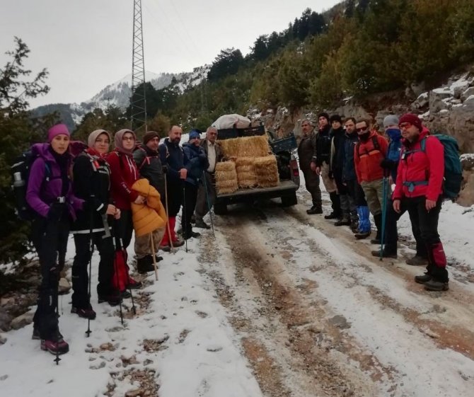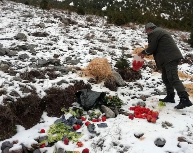 Osmaniye'nin yüksek kesimlerinde etkili olan kar yağışı sonrası yiyecek bulmakta zorlanan yaban hayvanları için Düldül Dağı havzasına yem bırakıldı.