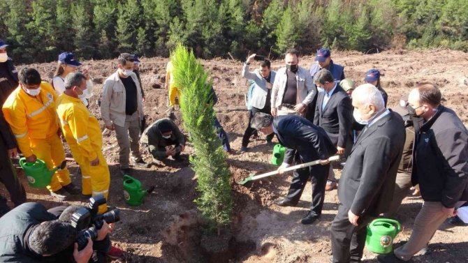Osmaniye merkeze bağlı Akyar köyünde çıkan orman yangınında küle dönen 15 hektarlık alanda "Geleceğe Nefes, Dünyaya Nefes" programı kapsamında 3 bin...