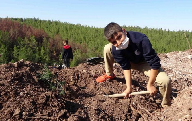 Osmaniye merkeze bağlı Akyar köyünde çıkan orman yangınında küle dönen 15 hektarlık alanda "Geleceğe Nefes, Dünyaya Nefes" programı kapsamında 3 bin fidan toprakla buluştu.