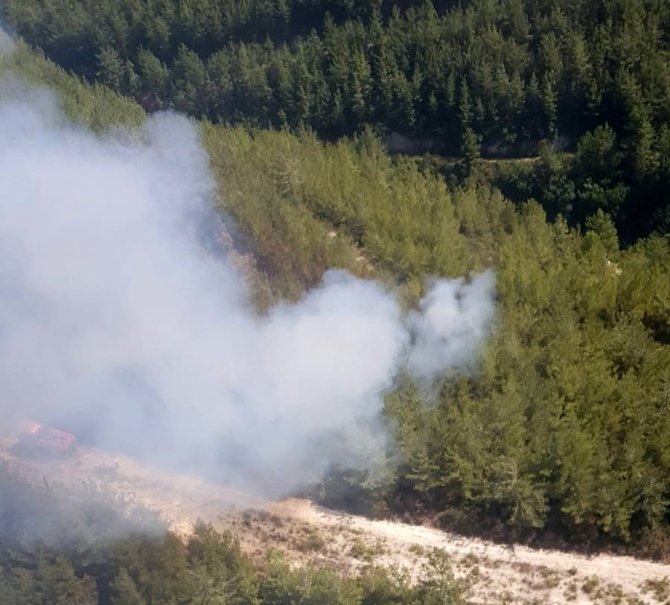 Arazinin engebeli olmasından dolayı karadan müdahale edilemeyen yangına havadan iki helikopterle müdahale edildi. Kısa sürede kontrol altına alan tamamen söndürülürken bölgede soğutma çalışmaları başlatıldı.