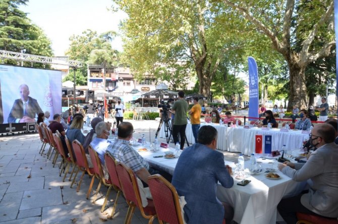 Sempozyuma video konferansla bağlanan Kültür ve Turizm Bakan Yardımcısı Nadir Alpaslan da Osmanlı Devleti'nin kurulduğu Bursa'nın kadim bir şehir olduğunu söyledi. Sempozyumun Bursa'nın tarihi değerlerinin ihya edilerek, tekrar kente kazandırılmasına vesile olacağını dile getiren Alpaslan, "Bey Sarayı'nın yeniden ihya edilmesi, hemen yanındaki Orhan Gazi Camisi'nin ihya edilmesi, Kent meydan düzenlemeleri ve diğer çalışmalarla, tarihi yapıların ihyasıyla Bursa, hanları, hamamlarıyla gerçekten kendine yakışır bir dokuya kavuşacak. Bu çalışmaları biz de Bakanlık olarak takdirle izliyoruz ve "Bu çalışmalara nasıl katkı yapabiliriz" bunların çalışmaları içindeyiz" dedi.