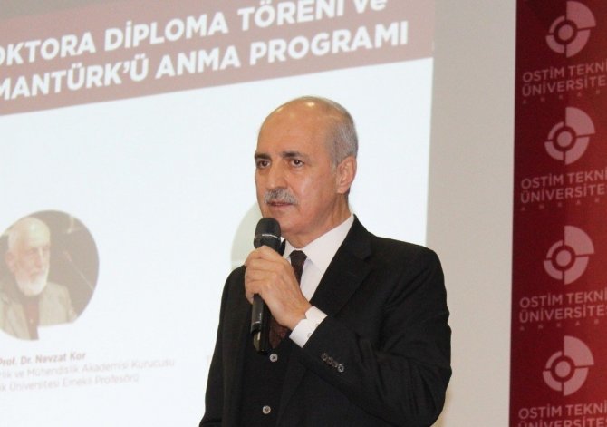 OSTİM Teknik Üniversitesi'nde düzenlenen törenle Sakarya Devlet Mimarlık ve Mühendislik Akademisi Kurucusu Prof. Dr. Nevzat Kor'a ve eski Enerji ve Tabii Kaynaklar Bakanı Mehmet Recai Kutan'a fahri doktora beratı tevcih edildi. AK Parti Genel Başkanvekili Numan Kurtulmuş, yaptığı konuşmada OSTİM çatısı altında çok anlamlı bir törende bulunmaktan büyük memnuniyet duyduğunu belirterek, "Ben OSTİM'in kuruluş günlerinden itibaren bilen birisi olarak söyleyeyim gerçekten örnek bir üniversite oldu. İnşallah çok daha başarılı bir şekilde yoluna devam eder. Türkiye'nin sanayileşmesi ve daha ileriye gitmesi için verilen mücadelenin Ankara ve Türkiye ölçeğinde önemli bir işaret taşı oldu. Bu salonda bulunanların, milletimizin büyük bir çoğunluğunun ortak hedeflerinden birisi yeniden güçlü büyük Türkiye'yi inşa etmektir. Onun için de başta sanayi alanındaki kalkınma olmak üzere toplumun her alanında kalkınmanın eş zamanlı olarak sağlanması, işte burada olduğu gibi makine sanayiinden yüksek teknolojilere kadar, savunma sanayiinden diğer bütün alanlara kadar elimizdeki imkanların el verdiği ölçüde azami ölçüde istifade ederek ülkemizi ileriye götürmek hepimizin ortak hedefi olmak zorundadır. El ele yaşadığımız dönemde ve yaşadığımız coğrafyanın bize sunduğu imkanlar çerçevesinde Türkiye'nin daha güçlü, düzenli şekilde ileriye doğru yürümesi gerekir. Bunun için de yıllardır konuştuğumuz şeylerden bir tanesi üniversite ile sanayinin iş birliği içinde olmasıdır. Üniversitenin toplumsal hayatın her tarafıyla yakın bir temas içerisinde olmasıdır. İşte OSTİM Teknik Üniversitesi bu fikirlerle doğdu. Ben bu üniversite projesinde emeği geçen herkese yürekten teşekkür ediyorum. Bu örnek Türkiye'nin başka şehirlerinde de örnek alınarak daha güçlü bir şekilde yolumuza devam etmemize vesile olur" diye konuştu.