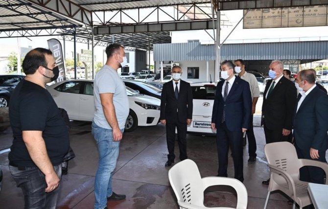 Osmaniye'de korona virüsle mücadele kapsamında Oto Galericiler Sitesi'nde denetim yapıldı. Salgınla mücadelede aşının önemine dikkat çeken Vali Erdinç Yılmaz galericilere, "Aşınızı oldunuz mu?" diye sordu.