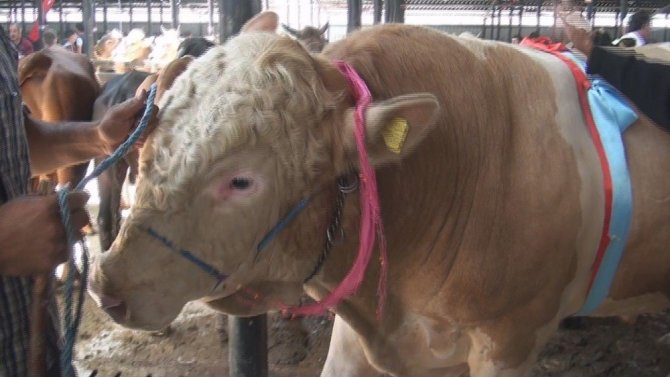 Üç yıldır pazarın en büyük havanını kendisi tarafından satıldığını söyleyen üretici Ali Mercan, "Bu hayvan 2 buçuk yaşında Simental cinsi bir tosun. Üç yıldır bu pazarın en büyük hayvanını ben ve Kütahya’nın da en büyük tosunlarını da ben satıyorum burada" dedi.