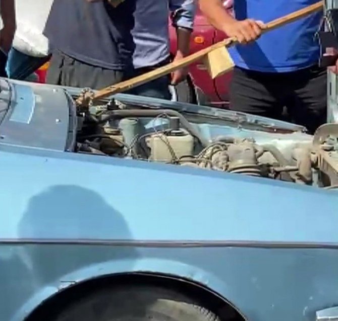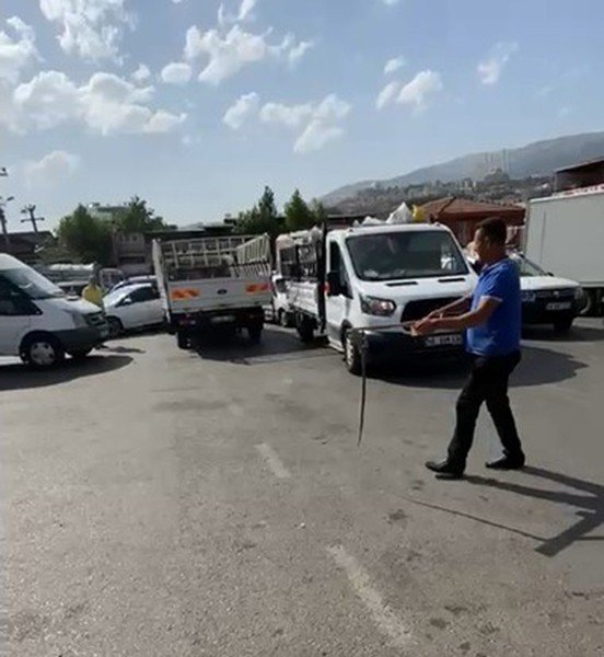 Sürücüye yardım edip yılanı çıkarmak isteyen kimi vatandaş eline büyük bıçak alırken, kimisi tahta parçası yardımıyla yılanı bulunduğu yerden çıkarmak istedi. Zarar verilmeden otomobilden çıkarılan yılan araziye bırakılırken, o anlar ise bir vatandaşın cep telefonu kamerasıyla kaydedildi.