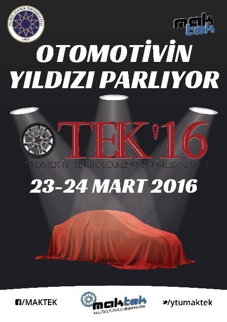 Yıldız Teknik Üniversitesi (YTÜ) tarafından düzenlenen Otomotiv Teknolojileri Etkinliği 16 (OTEK’16) 23-24 Mart 2016 tarihlerinde YTÜ Beşiktaş Kampüsü Oditoryum’da gerçekleştirilecek.