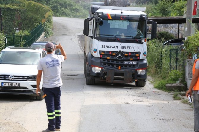 Serdivan Belediyesi Fen İşleri Müdürlüğü ekipleri Otuzikievler Mahallesi'ndeki ara sokakları asfalta hazırlıyor.