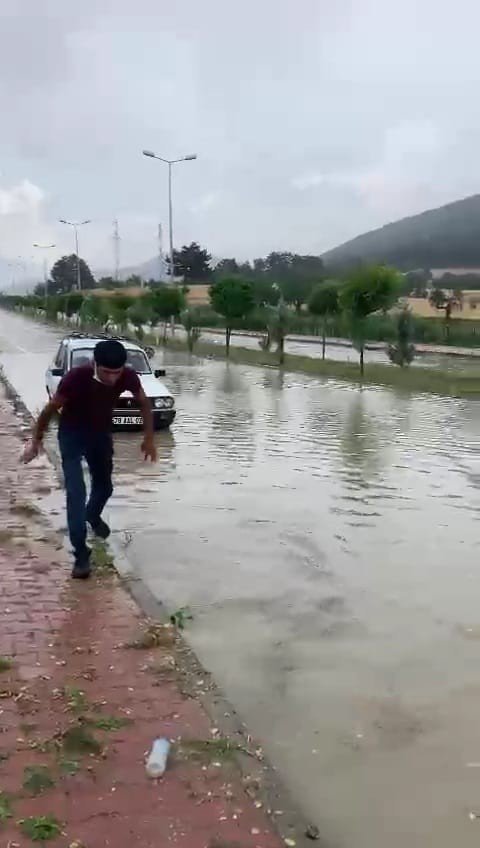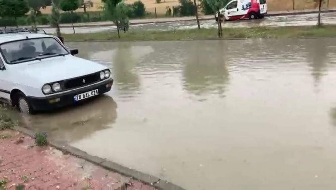 Karabük'te kent genelinde siyah bulutların gökyüzünü kaplarken, Ovacık ilçesinde öğle saatlerinde aniden bastıran sağanak hayatı olumsuz etkiledi. İlçenin girişindeki bulvarın bir bölümü kısa sürede göle döndü. Araçlar biriken sular nedeniyle ilerlemekte güçlük çekti. Bir araç göle dönen yolda arıza yapınca, araç içindeki bir kişi tıkanan rögar kapaklarını elleriyle açmaya çalıştı.