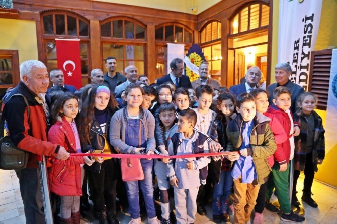 Serginin açılışını minik öğrenciler yaparken, sergi sonunda çocuklara Efeler Belediyesi tarafından özel olarak hazırlatılan ‘Atatürk ve Cumhuriyet Aile Oyunları’ seti hediye edildi.