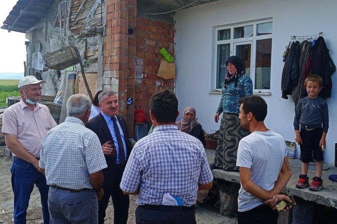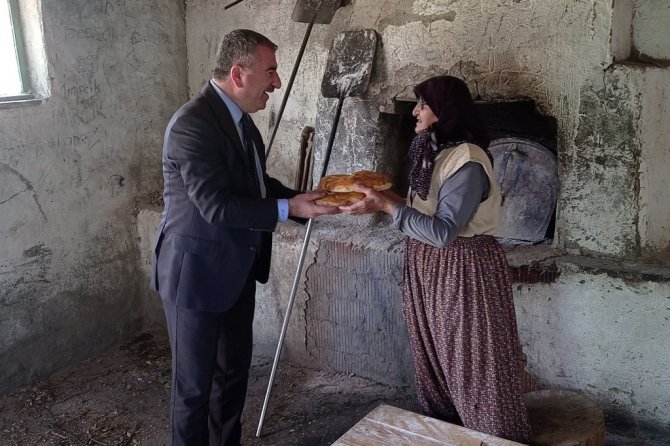 Mahalle ziyaret esnasında ekmek yapan bir kadın, Başkan Sebahattin Özdemir'e ekmek ikram etti.