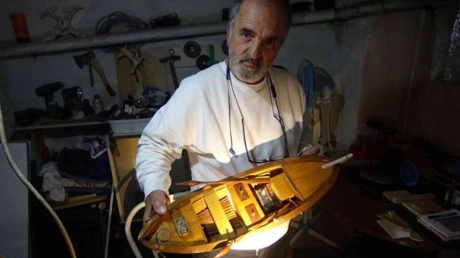Bursa'da evinin otoparkını atölyeye çeviren ahşap ustası, ürettiği maket gemileri sevdiklerine hediye ediyor.