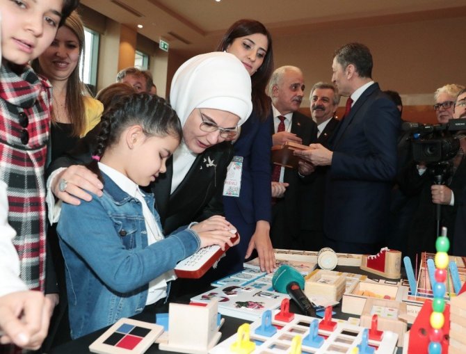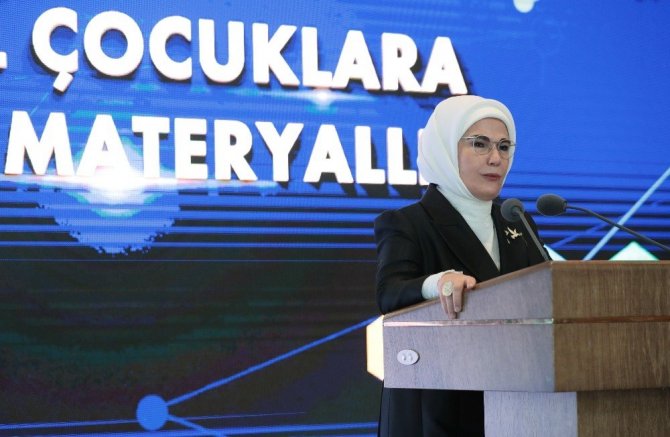 Cumhurbaşkanı Recep Tayyip Erdoğan’ın eşi Emine Erdoğan, Cumhurbaşkanlığı Külliyesi’nde düzenlenen "özel çocuklara özel materyaller" tanıtım toplantısına katıldı. Özel çocuklara ihtiyaç duydukları özel eğitim materyallerini Türkiye’nin yedi bölgesine göndermek üzere bir araya geldiklerini belirten Emine Erdoğan, “Eğitim, bir ülkenin geleceğine yaptığı en kıymetli yatırımdır. Geri dönüşü, umulandan daima daha fazladır. Biliyorum ki, Milli Eğitim Bakanlığımız, çocuklarımızın ihtiyacı olan eğitim metotları üzerinde titizlikle çalışıyor. Hele de özel öğrencilerimizin eğitimini bir kuyumcu terazisi hassasiyetiyle ele alıyor” ifadelerini kullandı.
